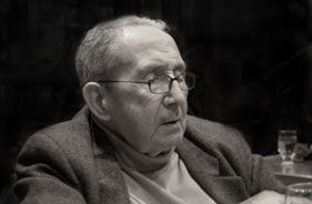 Now Edward Sanders, aka Fast Eddy, hatless in winter,